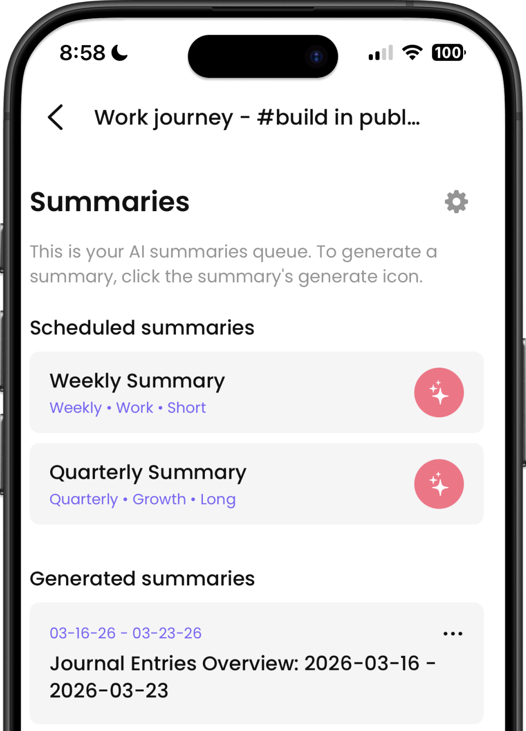 While a handwritten journal is tactile and expressive, a digital journal is secure, searchable, sharable to team members and provides accurate AI summaries that can be generated weekly and shared to teams and managers.