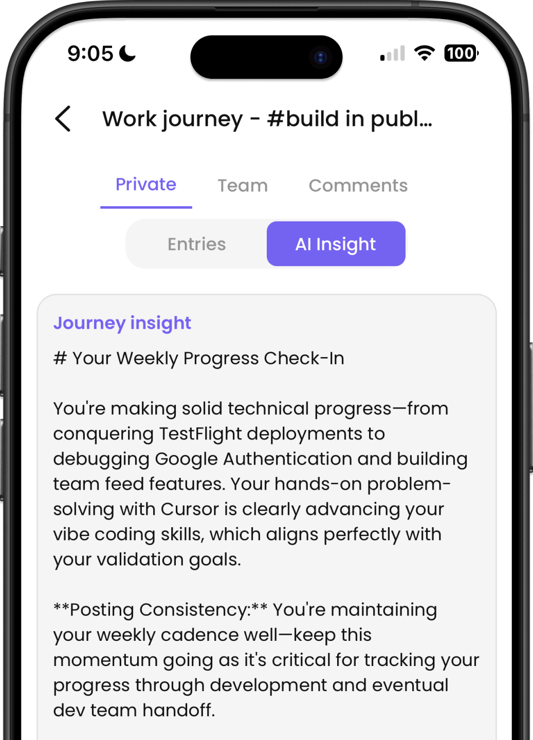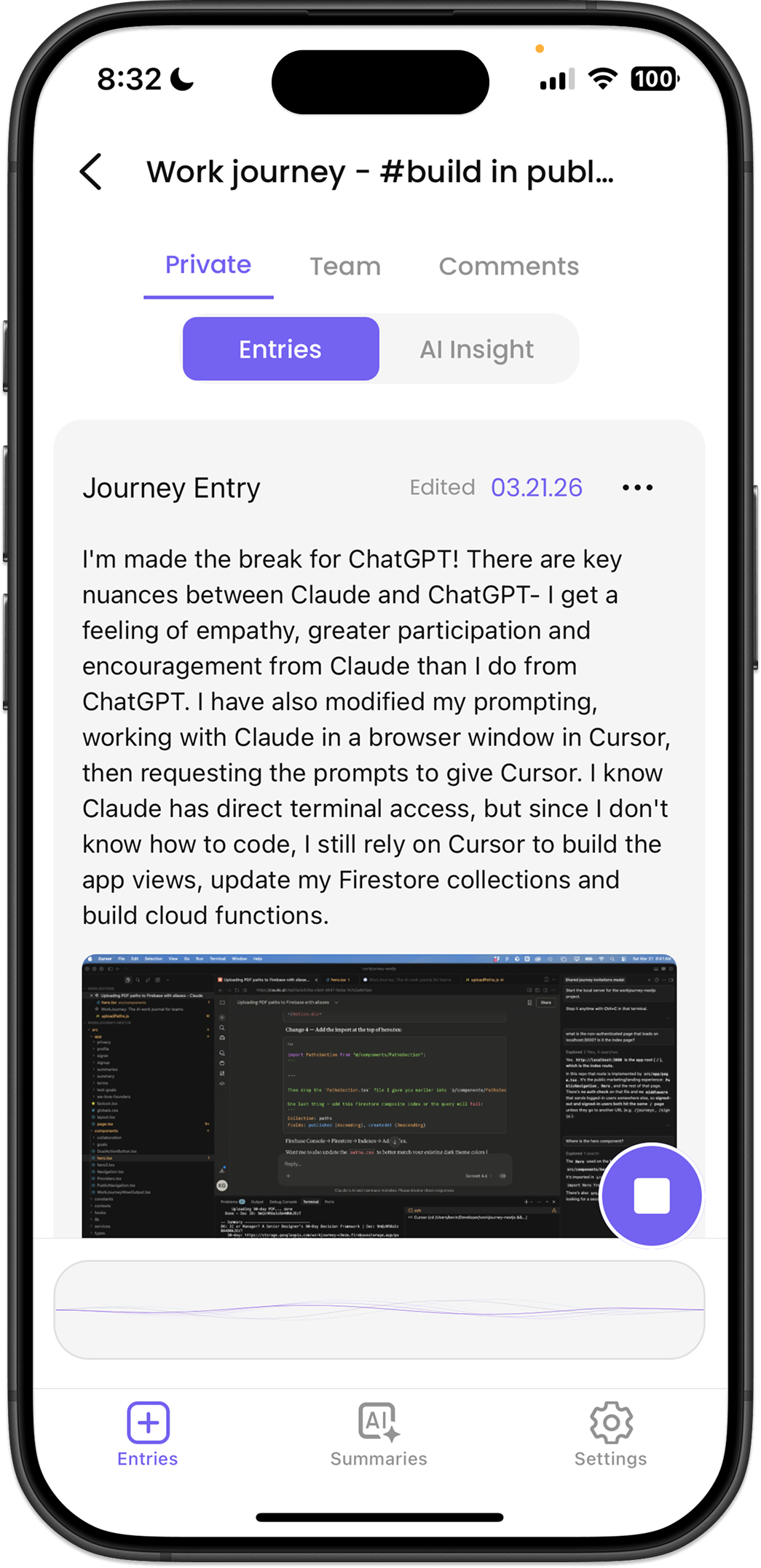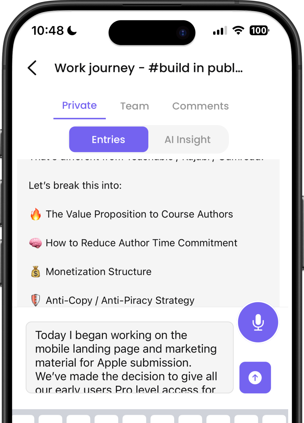 Voice journal from anywhere, get AI feedback, and keep your team in sync — all in one place.